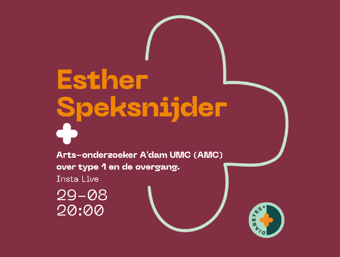 Insta Live, Diabetes+ in gesprek met Esther Speksnijder. Esther is Arts-onderzoeker bij de afdeling Endocrinologie & Metabolisme in het Amsterdam UMC Diabetes+ in gesprek met Esther Speksnijder. Esther is arts onderzoeker in het Amsterdam UMC locatie AMC en zij doet onderzoek naar type 1 diabetes tijdens de overgang. Een onderwerp waar nog te weinig kennis over is.… Continue Reading Insta live met Esther Speksnijder. Esther is Arts-onderzoeker bij de afdeling Endocrinologie & Metabolisme in het Amsterdam UMC